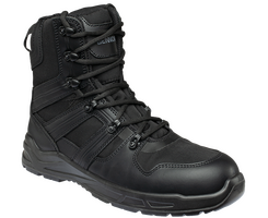 Členková bezpečnostná obuv s kompozitovou špicou a stielkou proti prepichnutiu. Vodeodolná. Nekovová. Priedušný zvršok. Podošva: Protišmyková, antistatická SRC PU/PU. Ochranná špica: kompozit. Stielka: kompozit. Norma: EN 20345. Veľkosť: 38-48.