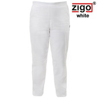 Biele dámske zdravotnícke nohavice ZIGO GITA so zapínaním na zips z našej chránenej dielne. Na zadnej strane nohavíc je guma, vpredu je pevný pás. Na boku majú zapínanie na zips. Nohavice majú po bokoch hlboké vrecká. Sú príjemné na nosenie a elastické vďaka obsahu elastánu. Materiál: 64% polyester, 34%bavlna, 2% elastán - 245 g/m2. Veľkosť: XS-4XL.