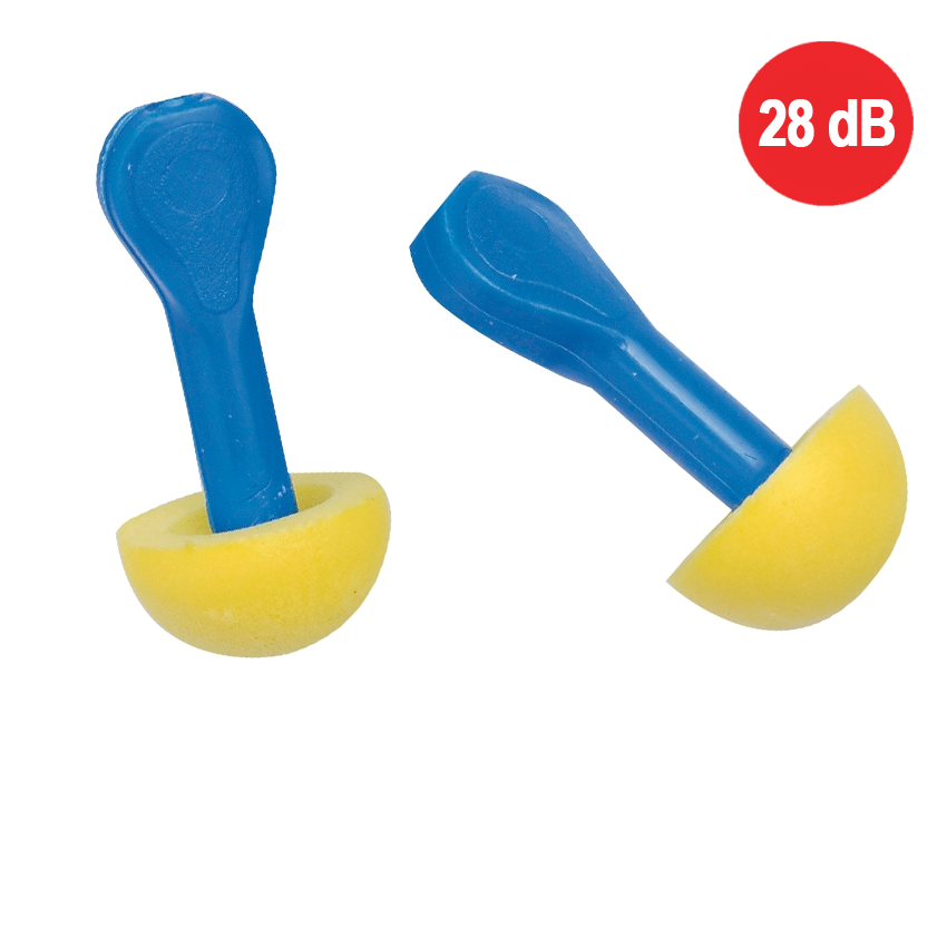 Umývateľné zátkové chrániče EAR EXPRESS hríbikového tvaru s plastovou rukoväťou pre ľahké a hygienické zavádzanie do zvukovodu. SNR: 28 dB.